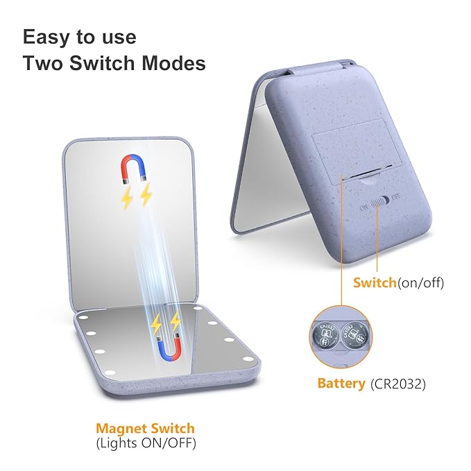 - 【Magnetic Switch】The double-sided mirror is magnetic and can be easily closed or opened, Easy to hold