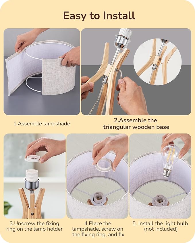 - [Stable & Space-saving] Tall and slender wooden tripod design makes lamp for nightstand structure more sturdy and less prone to tipping over; 9.05" diameter doesn't take up space, ideal for side table and children's room