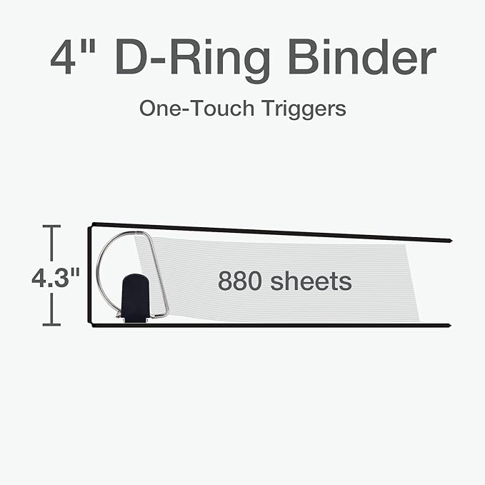 - Ergonomic ONE-TOUCH Easy Open binders open & close with a single tap; load pages or reshuffle notes easily; 4 inch Slant-D rings hold up to 880 sheets