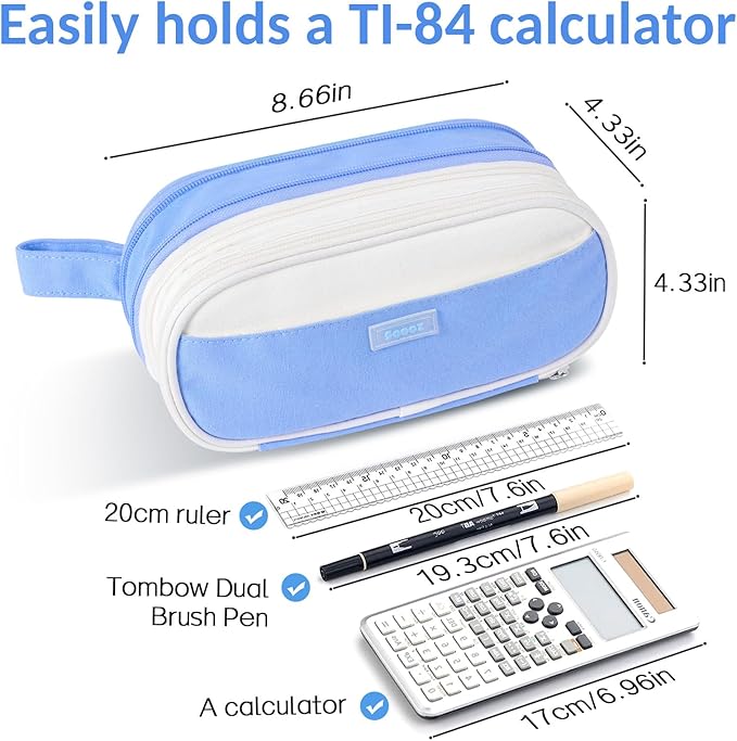 • Expanded Functionality Upgrade: The pencil case can double its capacity when fully expanded, offering 1.5 times more space than common expandable pencil cases in the market. You can easily adjust its size to accommodate the number of items you need to carry. Fully expanded dimensions: 8.66 x 4.33 x 2.56 inches; Unexpanded dimensions: 8.66 x 4.33 x 1.2 inches.
