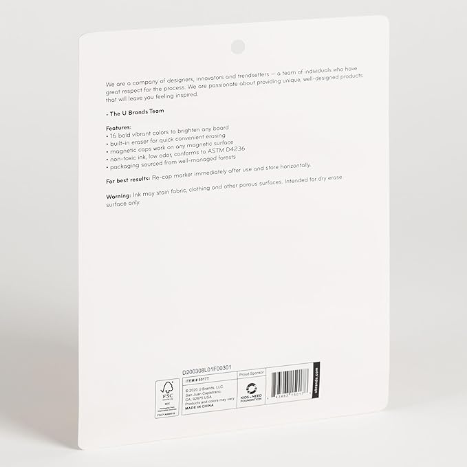 - QUICK CORRECTION CAP: Make corrections a breeze with the built-in felt erasers on the caps that allow for clean erasing without residue; featuring a contoured anti-roll cap shape, which prevents the markers from rolling off any flat surface or tray
