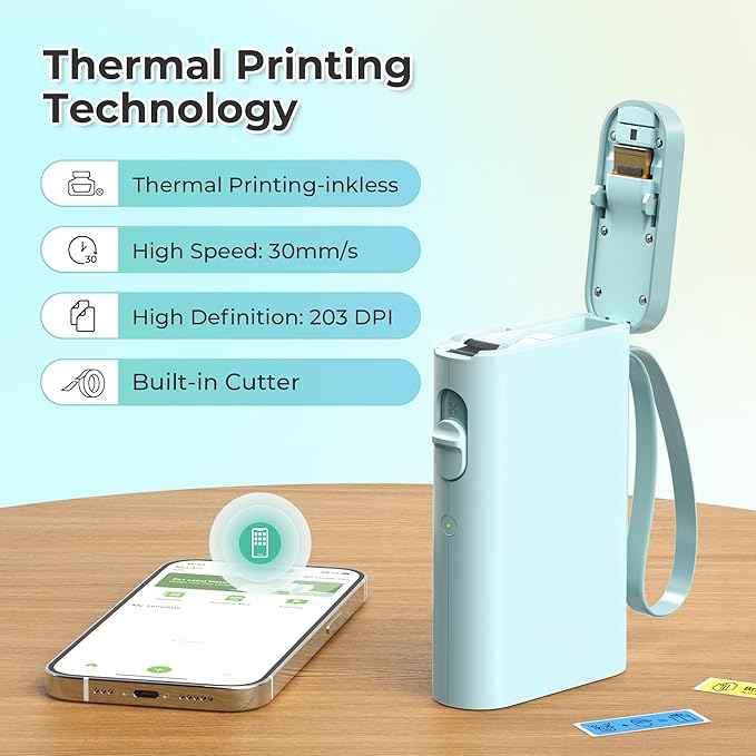 - High-quality Printing: Label Makers with BPA-Free Direct Thermal Technology. Equipped with high-speed chips and 203 DPI, you can enjoy high-definition without relying on ink or toner. Label maker built in durable rechargeable battery, it can work for a long time. This label maker is monochrome printout, which only prints black text. We can create color label and need to use color pattern label tapes for printing.(Note: Not including charging adapter, not suitable for fast charging adapter)