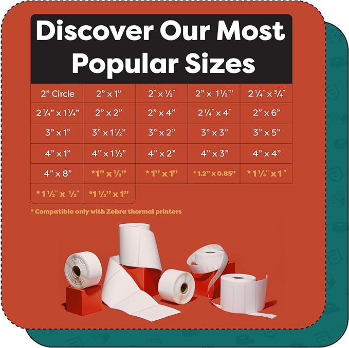 - Boosted Efficiency: Choose direct thermal labels that make a bold impact. Our white sticker rolls print quickly without ink, toner, or ribbons and are designed to avoid label jams and misfeeds — saving you time and money every time you print.