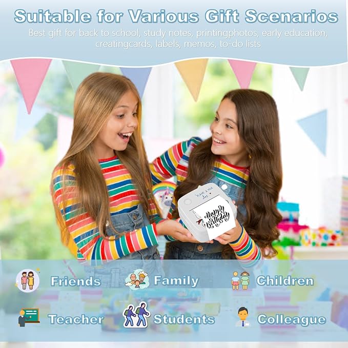 - [Thermarote Printer with Cute Design]→Fun little printer with a pretty cute design, you will love it as soon as you receive it. It's a nice gift for your youngers, they can use it in craft class orcan printouts. With the latest powerful APP function, you are able to use it printing to decorate your DIY scrapbook, or you can utilize the latest AI cartoonish character drawing function to design unique stickers for yourself