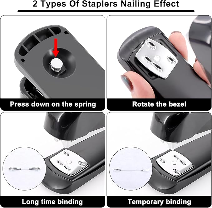 - REASONABLE DESIGN: The office organization is designed with smooth rounded edges that won't scratch hands;The stapler has 2 types of bindings that can be changed, so you can switch the form freely; The hole punch is made of soft silicone, which is comfortable to touch and protecting your hands.