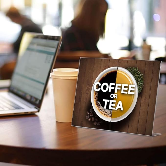 6pack Acrylic Sign Holder Horizontal, 8.5x11 for Picture Frames, L Shape Clear Plastic, Plastic Sign Holder, Table Sign Holder, Unbreakable Menu Holder for Restaurant, Office, School, Store and Home Use