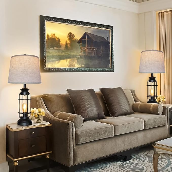 - Rustic Industrial Table Lamp:Table lamps for Bedrooms set of 2 are made of rafted from premium materials alloy coated with a layer of baking paint, which looks elegant, beautiful and anti-rust.The design of oil lamp decoration is suitable for rooms with a retro industrial style and a countryside theme