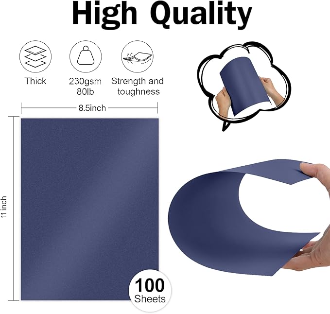 - Paper Dimension: Each package includes 100 sheets of navy blue paper, measures 8.5 x 11 inches in size, 230 grams in weight