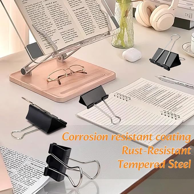 - DURABLE MATERIAL: Our binder clips are made of tempered steel, reliable and rust-resistant, black triangular shape with silver arms allows for a longer lifetime.