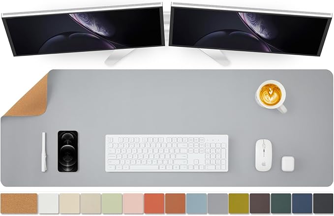 - Eco-friendly dual-sided design with Versatile Surface: Our desk mat combines a sustainable cork side and a premium PU leather side, offering both versatility and eco-conscious style for your workspace. The smooth surface supports seamless mouse operations and effortless writing tasks, promoting desk organization.