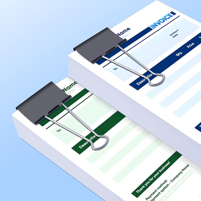 - Good Firm Grip: Binder clips extra large made of tempered steel are reusable and springy, so clip and remove without leaving the mark of staple.