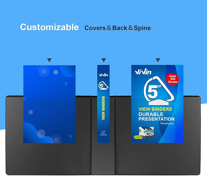 ViVin Durable 5 inch D Ring View Binder, Large 5" Slant-D Ring with 950-Sheet Capacity, Fit 8.5" x 11" Paper, 6 Pack(Black)