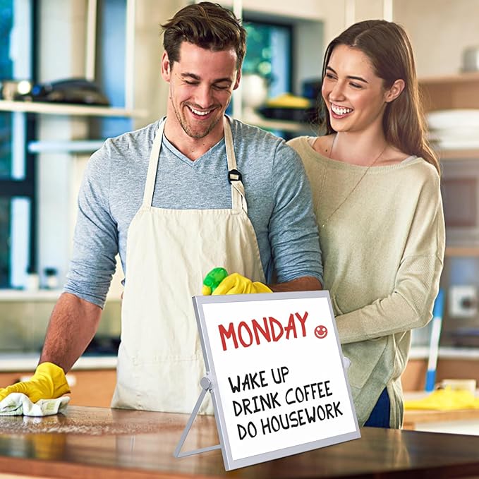 - FOLDABLE WHITEBOARD FOR DESK - The aluminum alloy stand can be expanded for different angles and needs, providing the flexibility to adjust to a comfortable angle and securely stand up the board.
