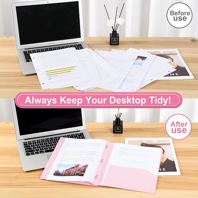 - 【3-prong with Fasteners】:The three prongs with fasteners allow for easy fastening of 3-hole punched letter size folders, perfect to secure and store documents with ease.