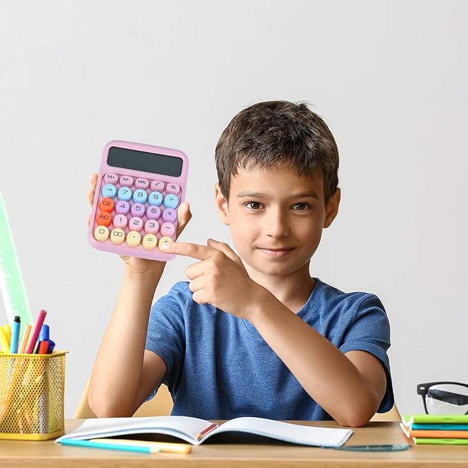 Mechanical Pushbutton Calculator,12 Digit Large LCD Display,Big Buttons Easy to Press,Colorful Candy Calculator,Automatic Sleep,with Battery.for Office,School, Home. (Pink)