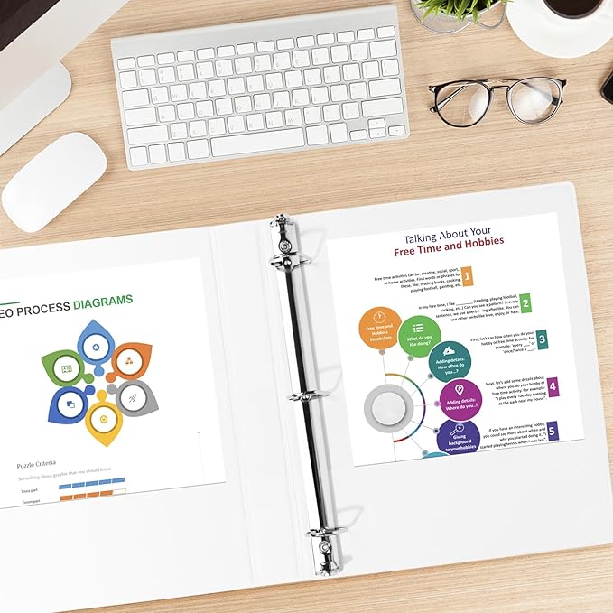 - 1" white binders hold us Letter size 8-1/2" x 11" paper, d ring can hold 225+ paper capcity, 12 packs.