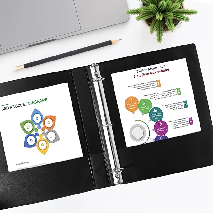 - 1" black binders hold us Letter size 8-1/2" x 11" paper, d ring can hold 225+ paper capcity, 12 packs.