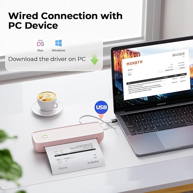 - Device Adaptability: The thermal printer offers seamless connectivity options for various devices. It supports Bluetooth connection for both iOS and Android smartphones, and USB connection for Windows and Mac computers. Please note that when connecting to a computer, the included data cable must be used. Additionally, a USB-Type C adapter is required for Mac connections. And it is designed to handle multiple file formats, ensuring compatibility with Word, Excel, PPT, TXT, and JPG files.