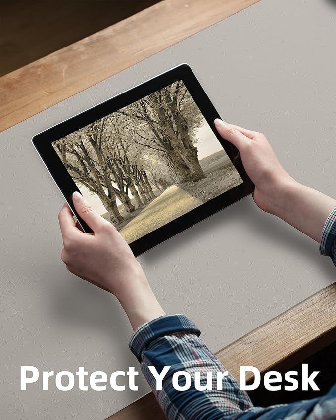 AFIING Leather Desk Pad Protector,Mouse Pad,Office Desk Mat, Non-Slip PU Leather Desk Blotter,Large Desk mat,Waterproof Keyboard mat for Office/Home/Decor (Light Grye,48"" x 17"")