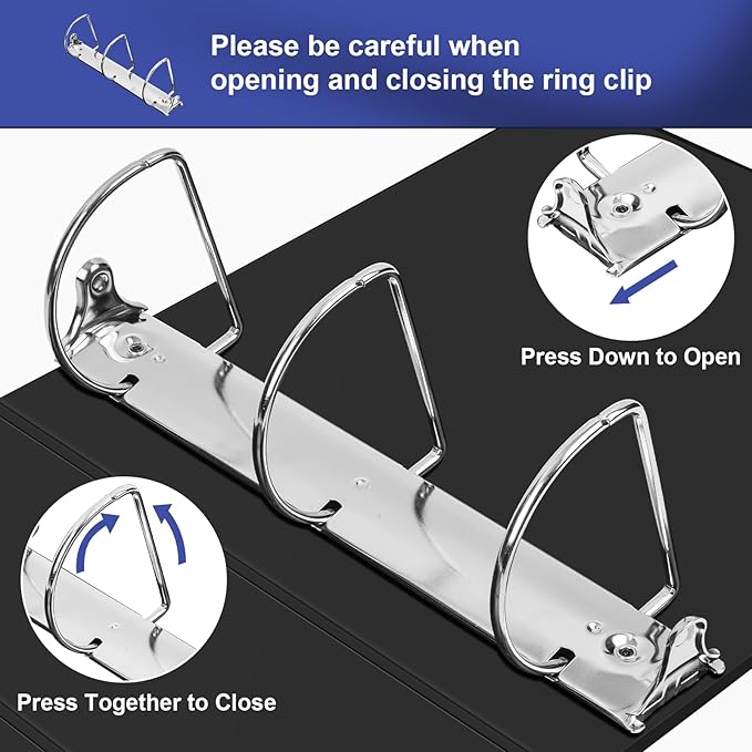 Comix Durable 3 Ring Binder, 4 inch D Ring Binders, Hold 835 Sheets of US Letter Size Paper, 6 Pack (Black)