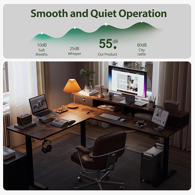 - 【L Shaped Design】The L-shaped extra-large desktop can provide ample office space and can be adapted to any corner of your home.