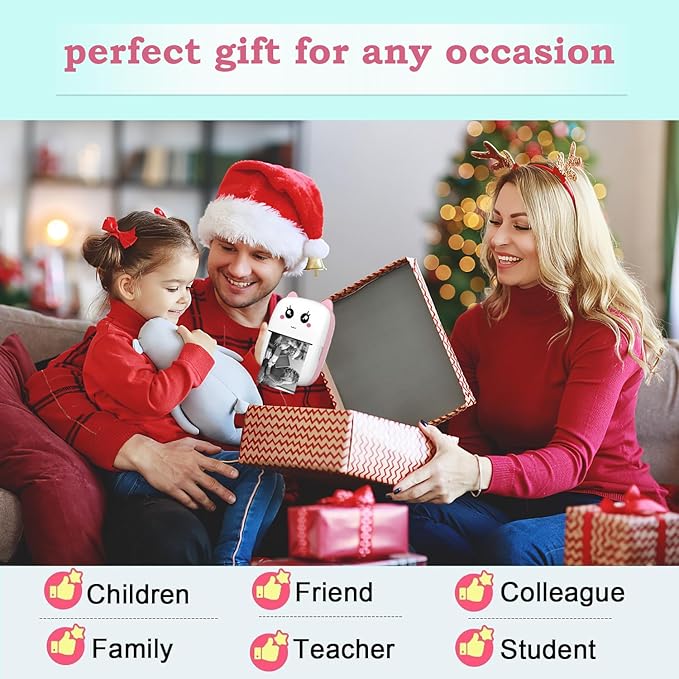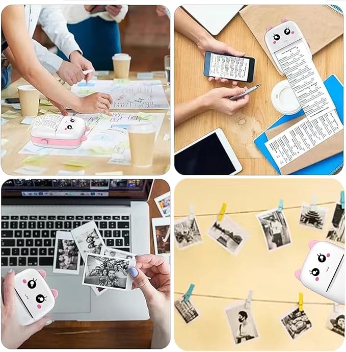 - 🎁【Creative Gift】This printer has a cute look and a small size, specially designed for kids. It also compatible with iOS and Android and can print photos, study notes, to-do lists, DIY stickers, storage labels, memo and more. It's practical and fun to use as a gift for friends, family and children.