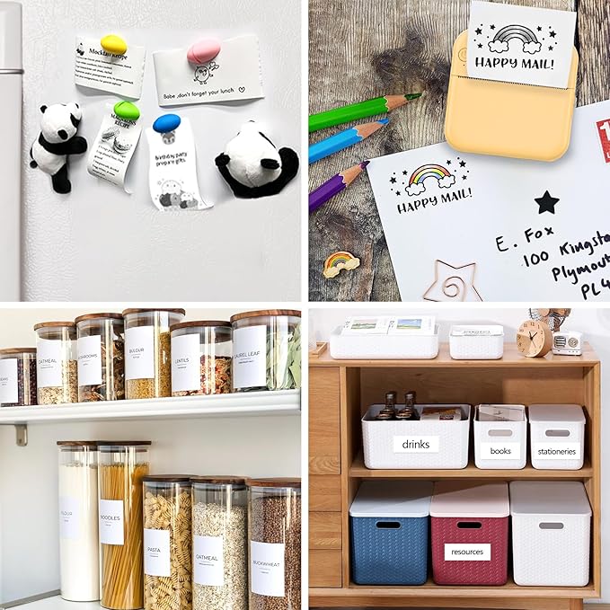 - Multipurpose Uses --- You can choose pictures from your phone album, write your text, or make labels, journals, notes, barcode, QR codes, receipt, etc. Kids can use this inkless pocket printer to print blank templates, fill color to exercise their imagination, also can use it to print learning materials or study notes. Parents can use this mini portable printer to organize shopping/to do lists, work plans or more, a great tool for all ages.