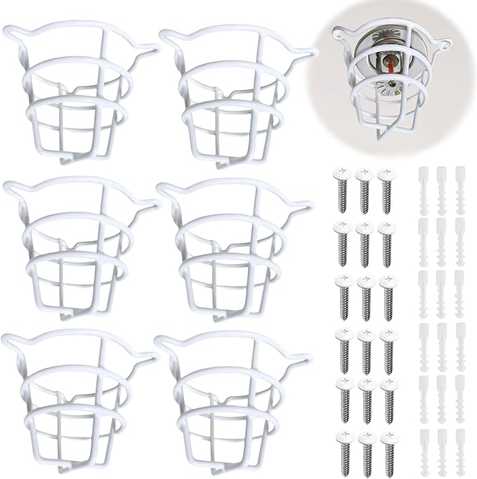 (6 Pack) White Fire Sprinkler Head Guard for Both 1/2" & 3/4" Sprinkler Head for Protecting Flush Mount & Side Wall & Semi - Recessed Sprinkler Head Cover Cage