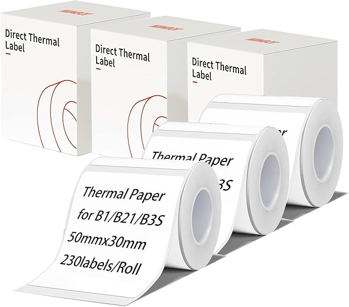 - Specifications: The package contains 3 rolls of B21/B1/B3S Label Tape. The size of each label printing sticker is about 1.96"x 1.18"(50*30mm), Number of labels per volume is 230, Print black on white labels. Actual output such as fonts and margins may vary. Small and portable, does not take up space and is easy to use. And is compatible with B21/B1/B3S label printers.
