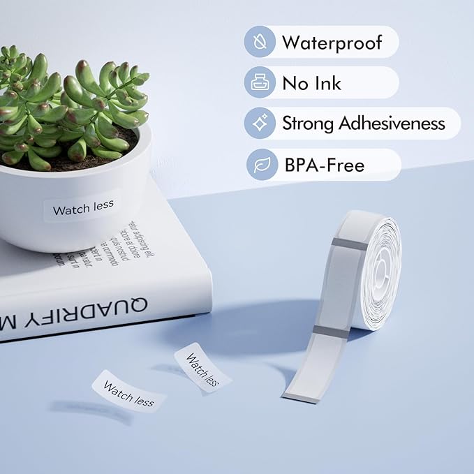 - Refill Labels: One roll of direct thermal labels with size 14 x 40 mm (0.55'' x 1.57''), clear label tape, self-adhesive sticker, black and white printouts