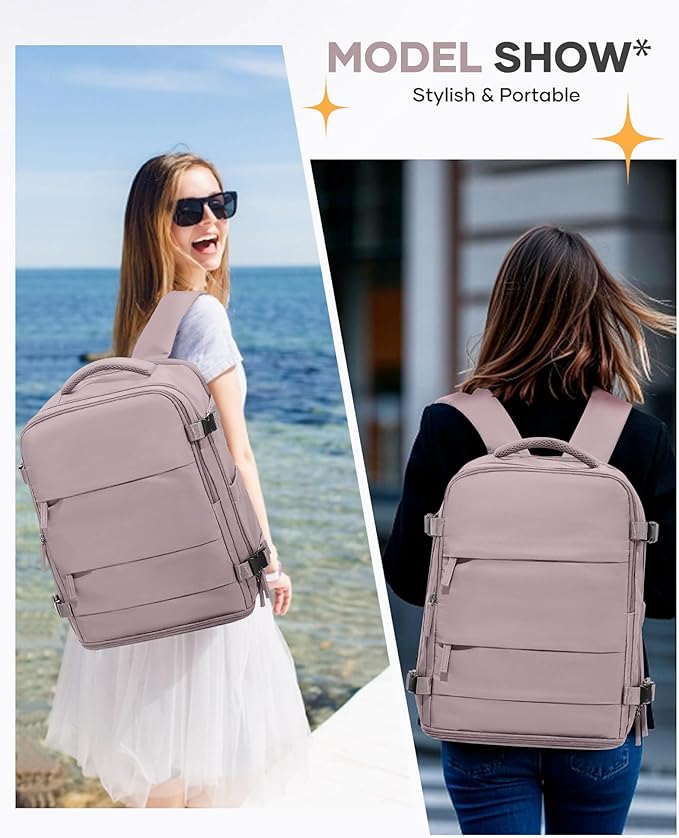 - 【Ample Storage Space】This travel backpack external dimensions: 14.2"x7.8"x17.7"/36cm x 20cm x 45cm (L x W x H), the main compartment can hold 5~7 pieces of daily clothes, Its space can fully accommodate your short-term travel and short-term business trips.The interior of the backpack has multiple pockets for tablets, credit cards and other valuables, as well as a separate wet pocket for wet toiletries and wet clothes. The backpack also has a separate computer compartment for a 15.6” laptop