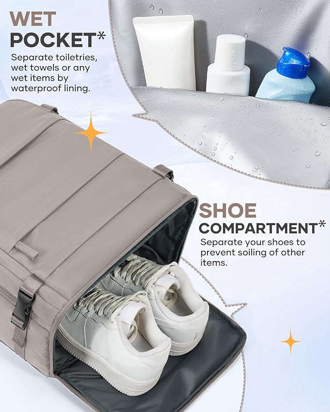 - 【Multi-Pocket Function】This backpacks for travel has a special shoe compartment for shoes, which can hold sneakers (Hint: only one pair) and can accompany you out anywhere. This backpack for travel has 2 front pockets for tablet, cell phone, rechargeable keys and other small items; and 1 cup pockets for umbrella or cup