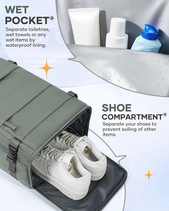 - 【Multi-Pocket Function】This backpacks for travel has a special shoe compartment for shoes, which can hold sneakers (Hint: only one pair) and can accompany you out anywhere. This backpack for travel has 2 front pockets for tablet, cell phone, rechargeable keys and other small items; and 1 cup pockets for umbrella or cup