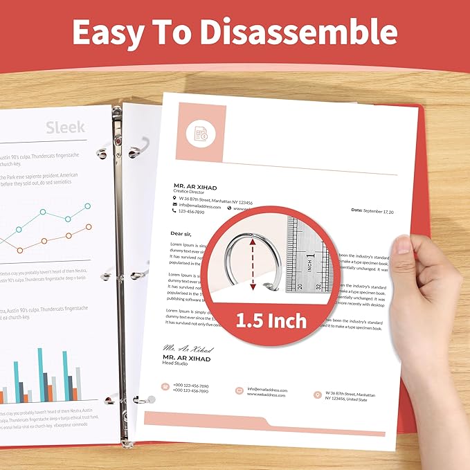 - LONG-TERM PRESERVATION: The 1.5 inch binder 3 ring is made of sturdy material and is moisture and dust resistant. This one and a half inches binder is PVC-free and non-stick. The color will always remain without fading during use. The durable rounded edges have a corner grinding process, which effectively prevents wear and tear