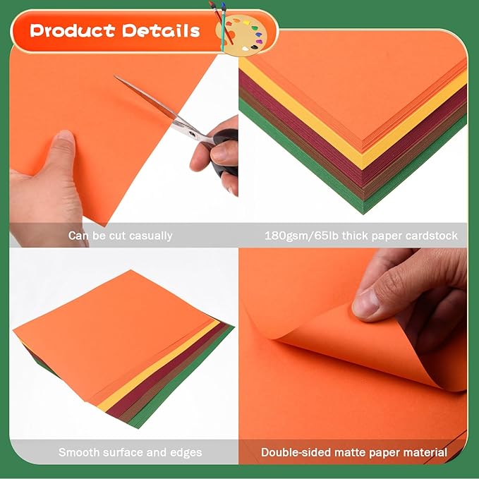 - 【Wide Application】: Our cardstock paper can well meet your different craft needs, suitable for making invitation cards, thank-you notes, background paper, paper cutting, scrapbooking and handicrafts, and also suitable for classroom activities, bulletin boards, autumn theme decorations and more, perfect for holiday parties, baby shower, birthday parties, and others.