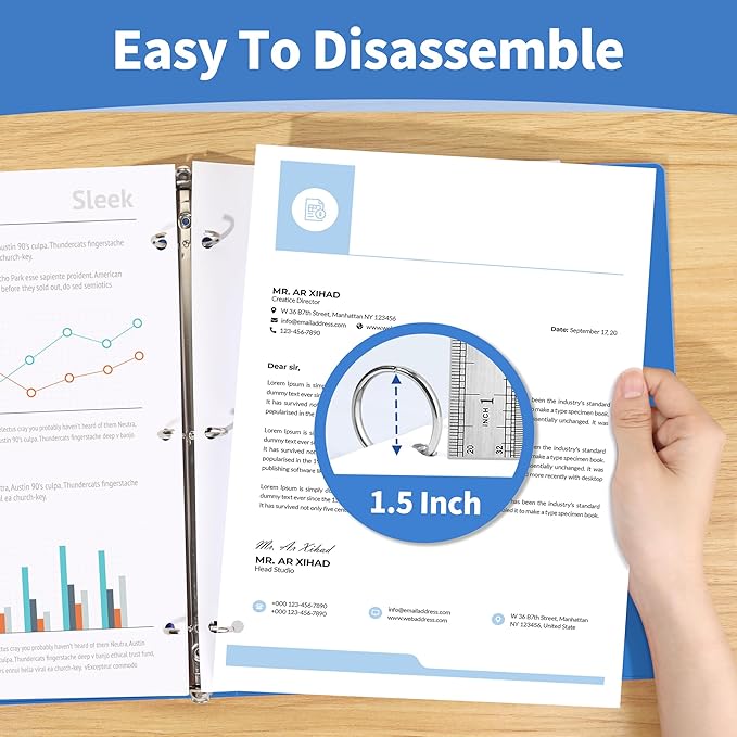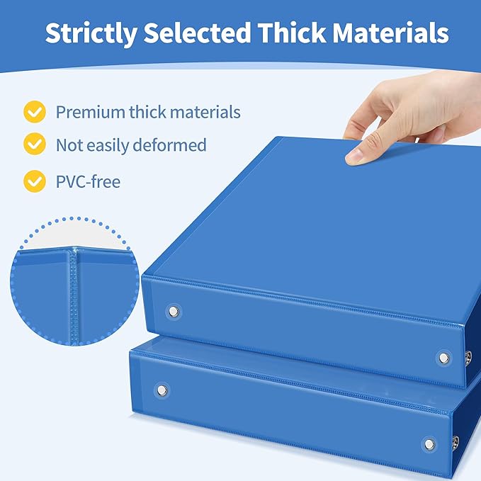 - LONG-TERM PRESERVATION: The 1.5 inch binder 3 ring is made of sturdy material and is moisture and dust resistant. This one and a half inches binder is PVC-free and non-stick. The color will always remain without fading during use. The durable rounded edges have a corner grinding process, which effectively prevents wear and tear