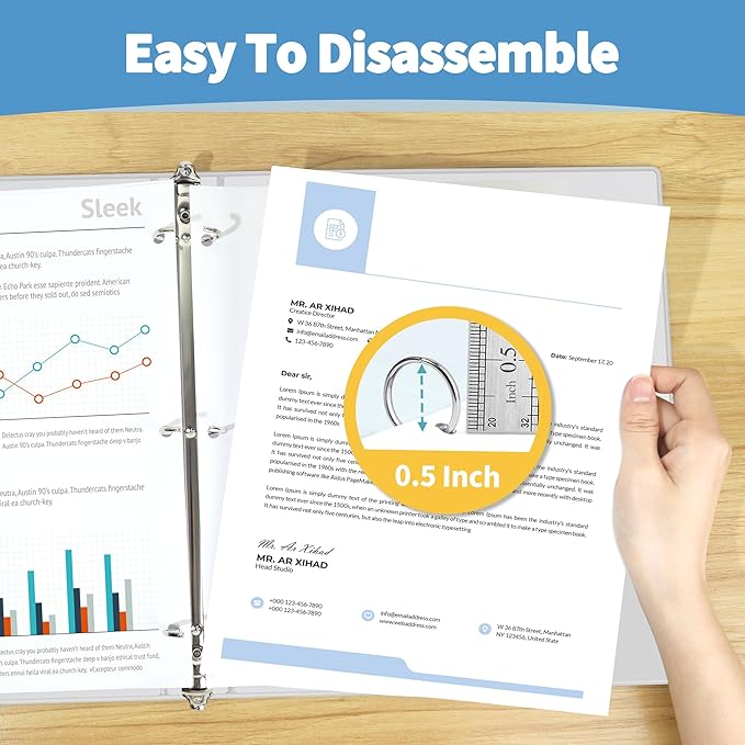 - LONG-TERM PRESERVATION: The 1/2 inch binder 3 ring is made of sturdy material and is moisture and dust resistant. This 0.5 inch binder is PVC-free and non-stick. The color will always remain without fading during use. The durable rounded edges have a corner grinding process, which effectively prevents wear and tear
