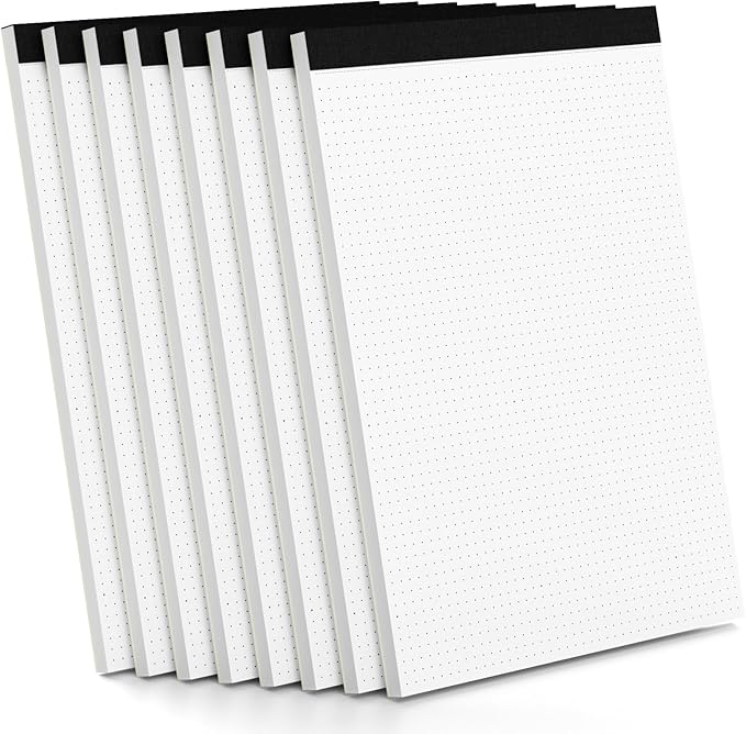 Dot Grid Journal Notepad 8.5 x 11, 8 Pack, Dotted Grid Paper Note Pads 8.5" x 11", White Dotted Journal 8-1/2 x 11, 30 Sheets, 1/5" Dot Spacing Paper Writing Pads for Sketching, Drawing, 30 Sheets/Pad