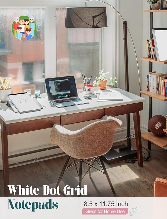 - 【STURDY BACKRING】- The hardboard back of the dot grid paper notebook 8.5 x 11 made of quality card stock material for writing support. The sturdy backing of the dot grid paper notepad paper offers additional stability while you write, draw, and design, 8-1/2 x 11 grid graph paper pad allows you to take notes without a table or desk to lean on. The hard chipboard backing on each pad allows you to take notes without a table or desk to lean on.