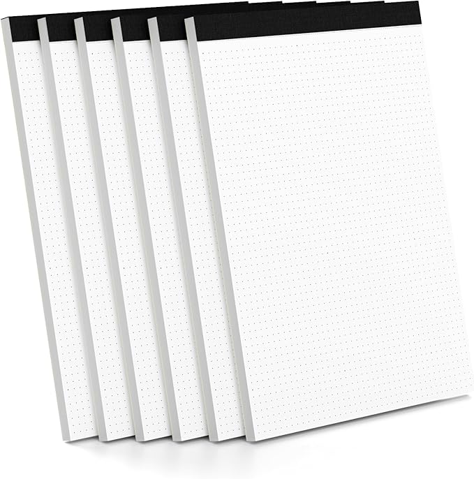 Dot Grid Pads 8.5" x 11", 6 Pack, Dotted Grid Journal Paper 8 1/2 x 11, Easy Tear-off Dotted Notebook, 5x5 Dotted Grid Notebook, 1/5" Dots Notepads 8.5 x 11, Dotted Journal Paper Pads, 30 Sheets/Pad