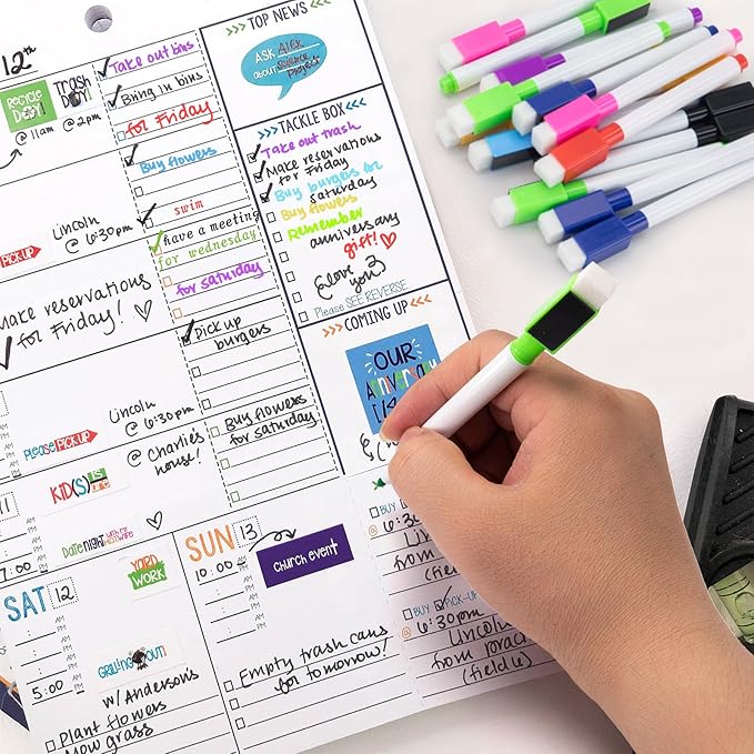 - Fast-Drying: The dry erase marker pen with eraser cap is dry and residue-free, no broken ink marks and no ink-leakage, no residue