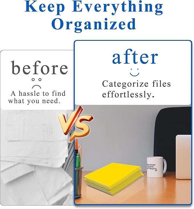 - Package Includes:50 packs yellow file folders with 2 pockets and business card slot,100 plus Sheet Capacity,enough use for you,perfect for school,paperwork,office,business.