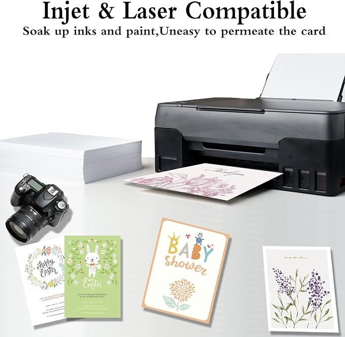 - ❤️ [PRINTER FRIENDLY]: Our durable notecards work seamlessly with most inkjet, laser printers, and photocopy machines. Just double-check if your printer can handle their size and weight.