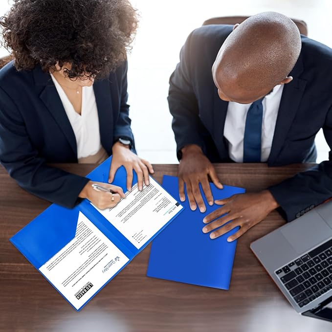 - Heavy duty plastic folders with size 9.4" x 11.6", fit us letter size paper.
