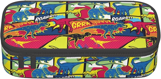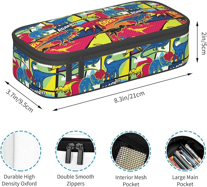 Cartoon Dinosaur Large Pencil Case With Zipper Compartments Stationery Pencil Bag For Kids Teens Students School Supplies
