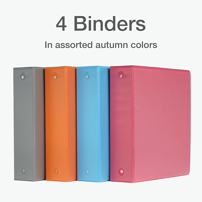 Cardinal 3 Ring Binders, Binders for School and Office, Durable 2 Inch, Round Rings, Holds 475 Sheets, ClearVue Presentation View, Non-Stick, Assorted Autumn Colors, 4 Pack (1002481)