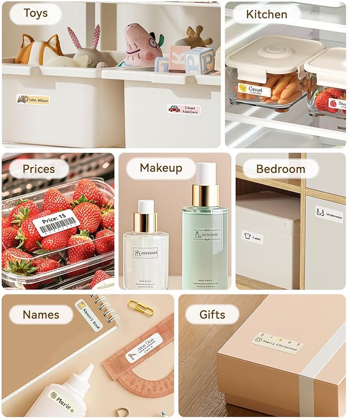 - 【2025 New Version Label Maker】This household organization label maker is the 2024 new version D110 label machine, smaller but better, offering superior print clarity resulting, smooth printing effects and fast processing. Easy to use for quick home use and basic label making, which also can help labeling in school, perfect for back to school gifts.