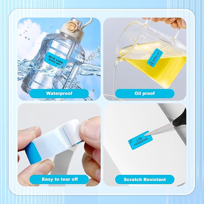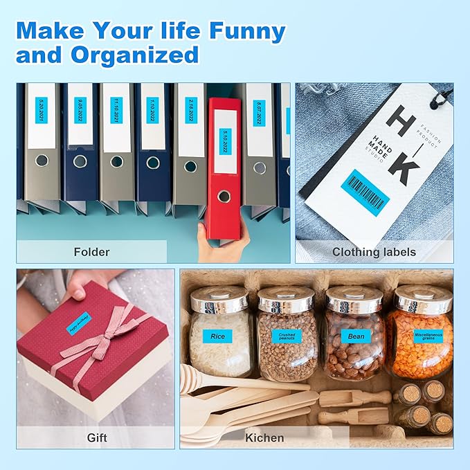 - Packing case expertly designed environmentally friendly , lightweight , and simple to place,Label maker tape Highly usable in both daily life and working environment, sorting labels for storage, date labels for food and cosmetics, displaying prices of goods, sorting labels for school and office documents, etc. Labels can be firmly adhered to paper, foam bags, plastic, glass,and more.
