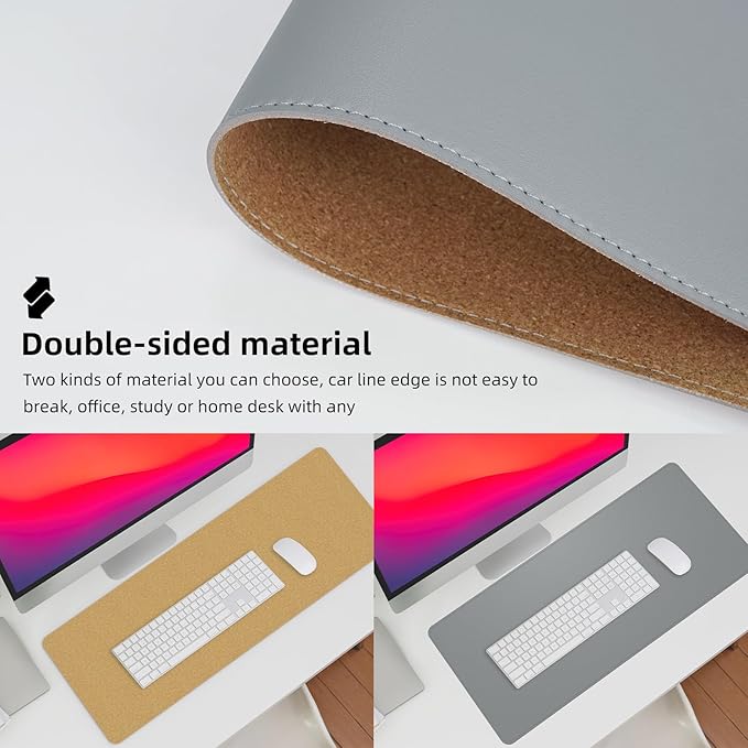 Desk Mat,35.4" x 17" Leather Desk mat,Double-Sided Desk Pad,Desk matt for Desktop,Large Mouse Pad,Office Desk mat,Waterproof Desk Blotter pad for Office&Home(Light Grey+Cork)