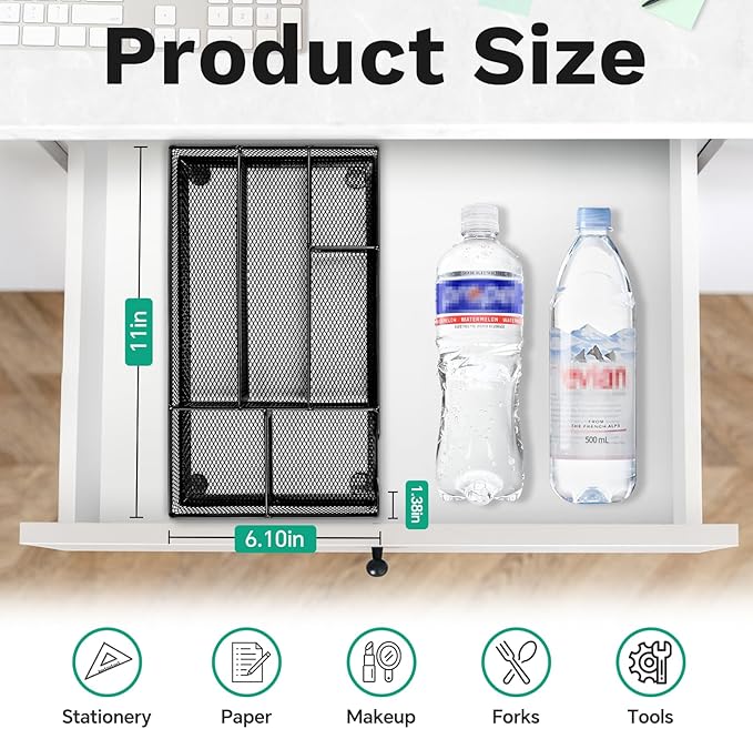 Desk Drawer Organizer Tray Versatile Metal Mesh Desk Organizers and Accessories for Office Supplies, School, Home, 10.34 x 6.1 x 1.38 Inches